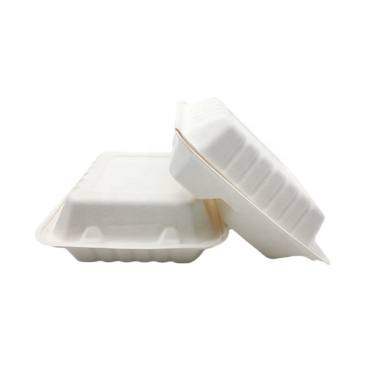 Biologisch abbaubarer Bagasse Clamshell Box Einwegteller Hochwertiger Zuckerrohr-Nahrungsmittelbehäl...