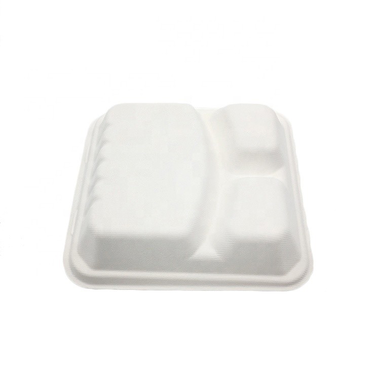 China Herstellung Lebensmittelbehälter zum Mitnehmen Zuckerrohr Bagasse Geschirr Essenstablett Einweggeschirr